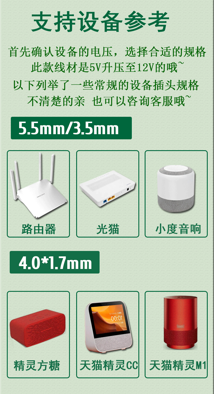 - Specification Model: Voltage boosting cable 12V 4017天猫精灵 1m white