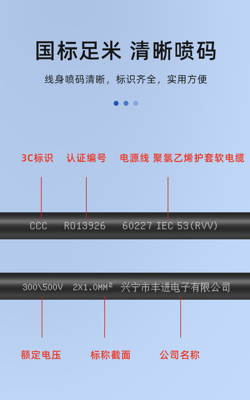 - Specification Model: White RVV3*1.0 Square (Round) Three-Core Wire