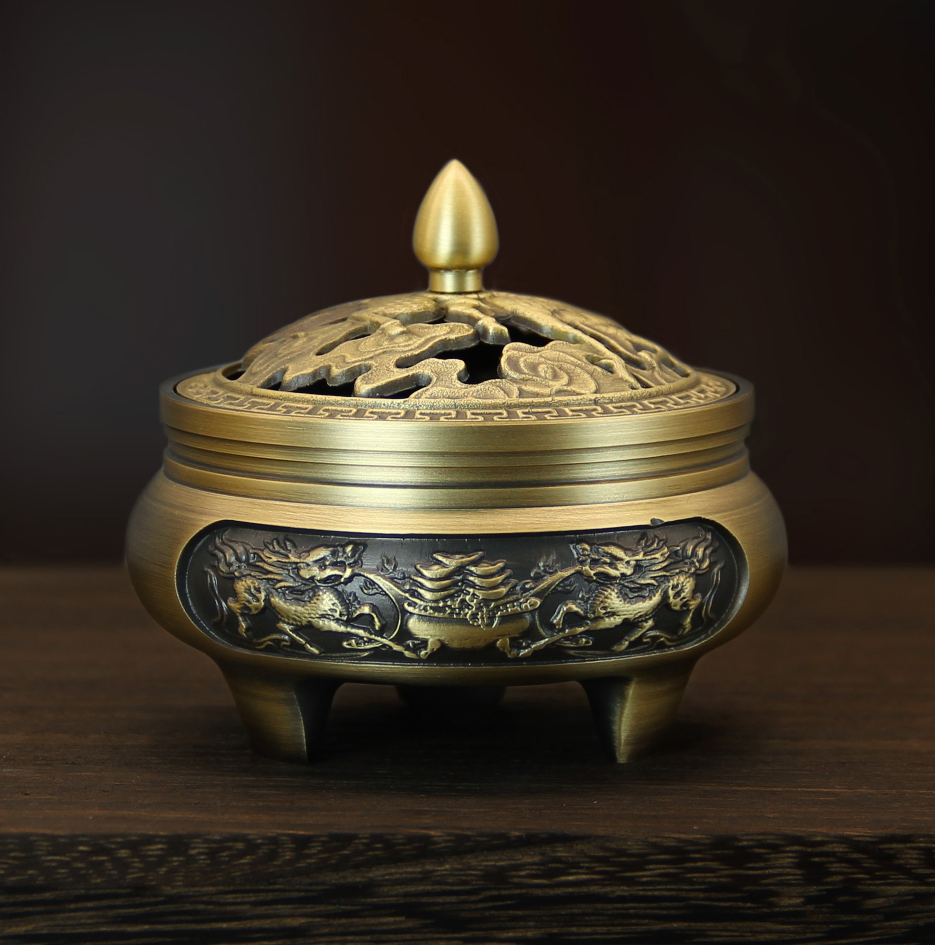 - Specifications: Carved three-legged stove-Shuanglong