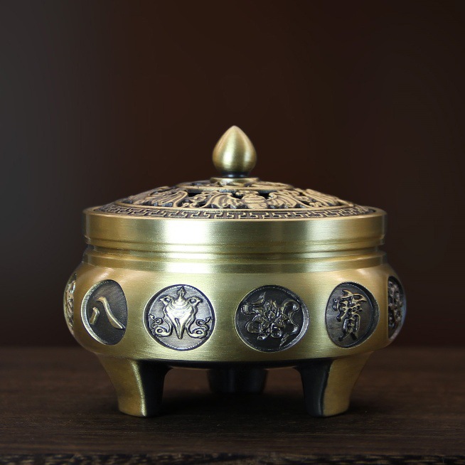 - Specifications: Carved three-legged stove - eight auspicious treasures