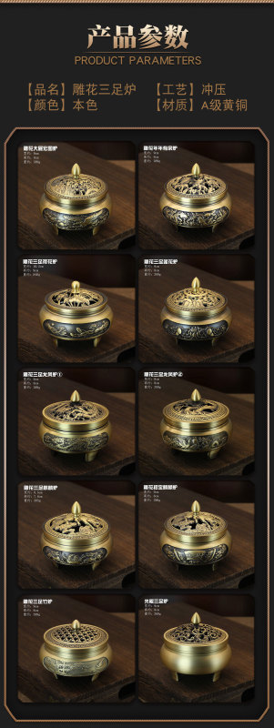 - Specifications: Carved three-legged stove-Mandiao Wufu