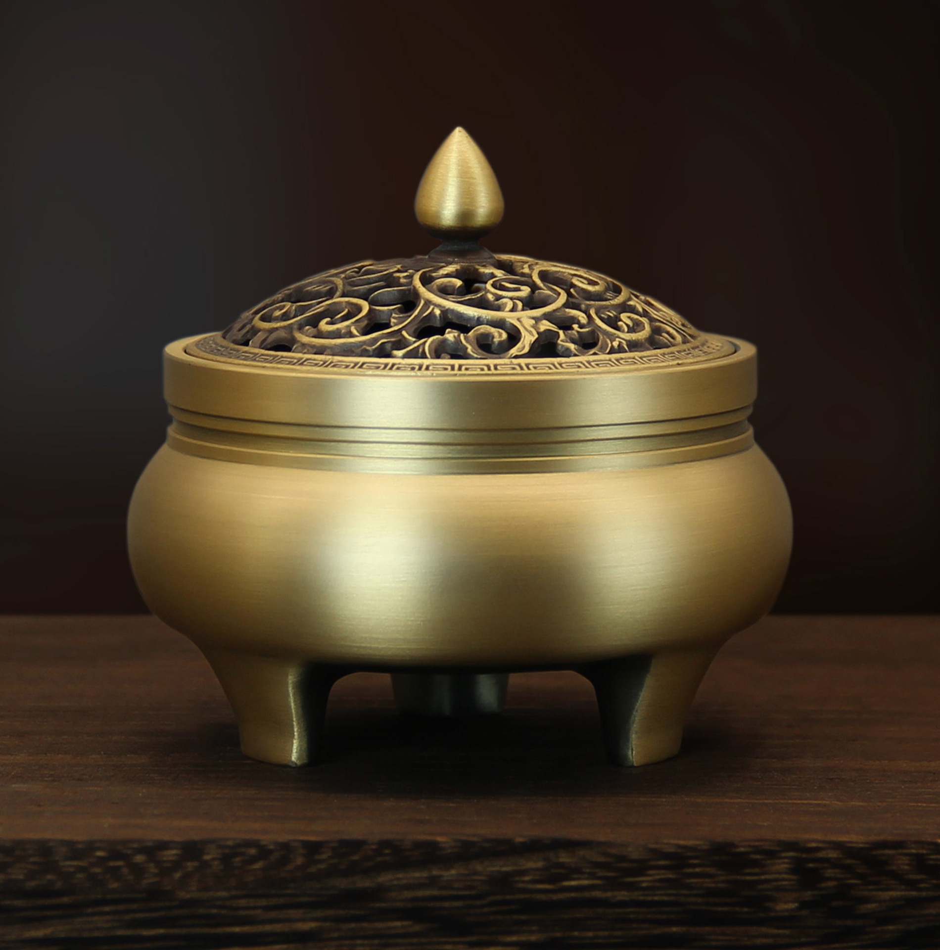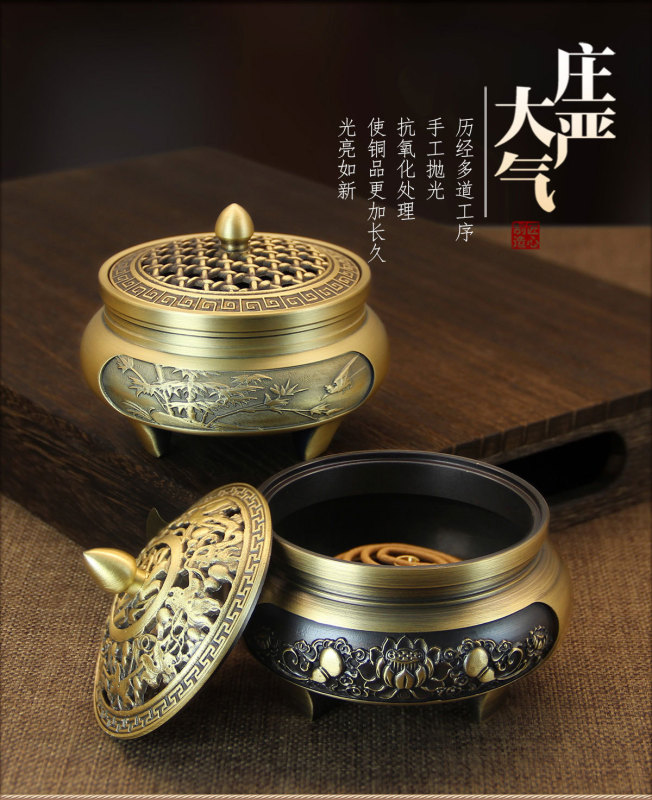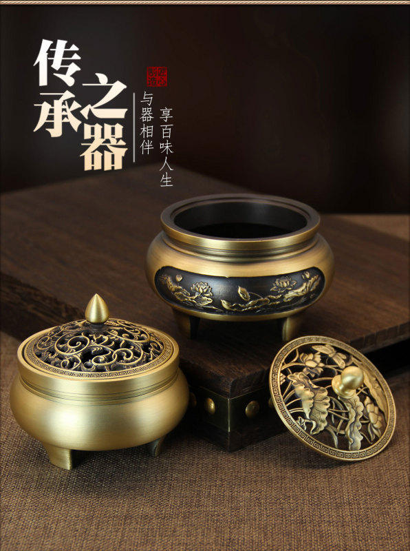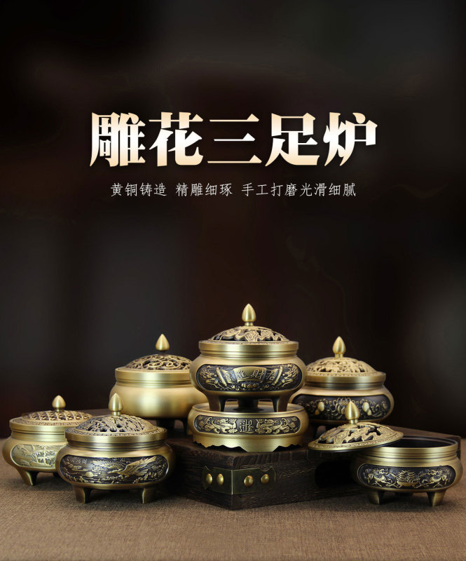 - Specifications: Carved three-legged furnace - full of carved lotuses