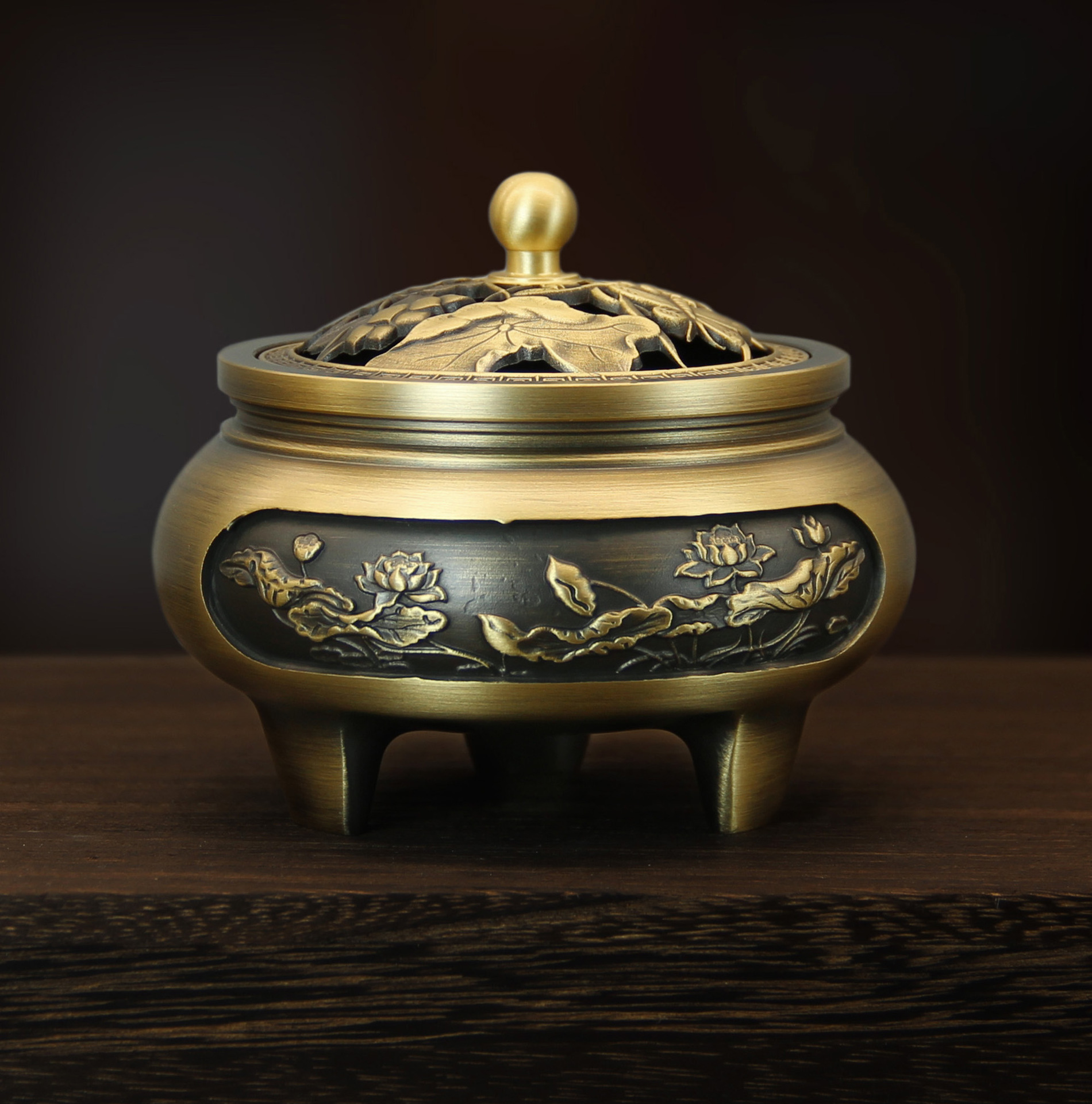 - Specifications: Carved three-legged stove-lotus
