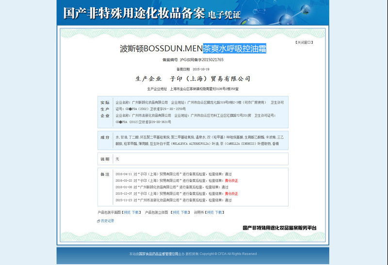 - 非特化妝品備案證號:滬G妝網備字2015021765