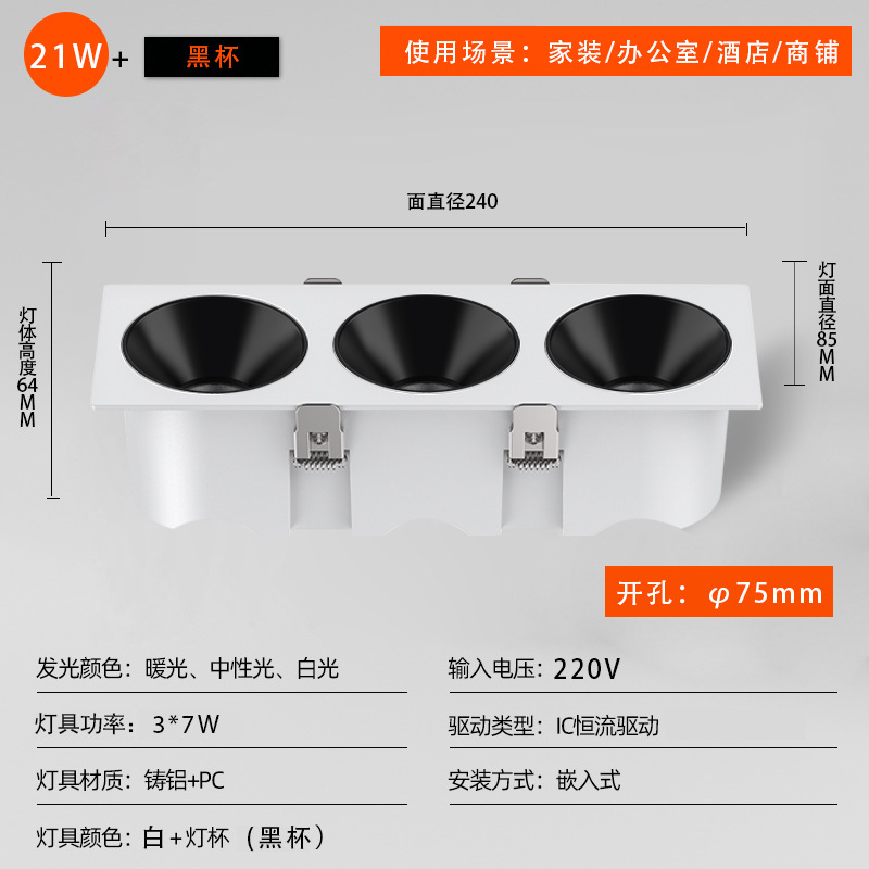 - 功率:方形230*75開孔21W黑杯