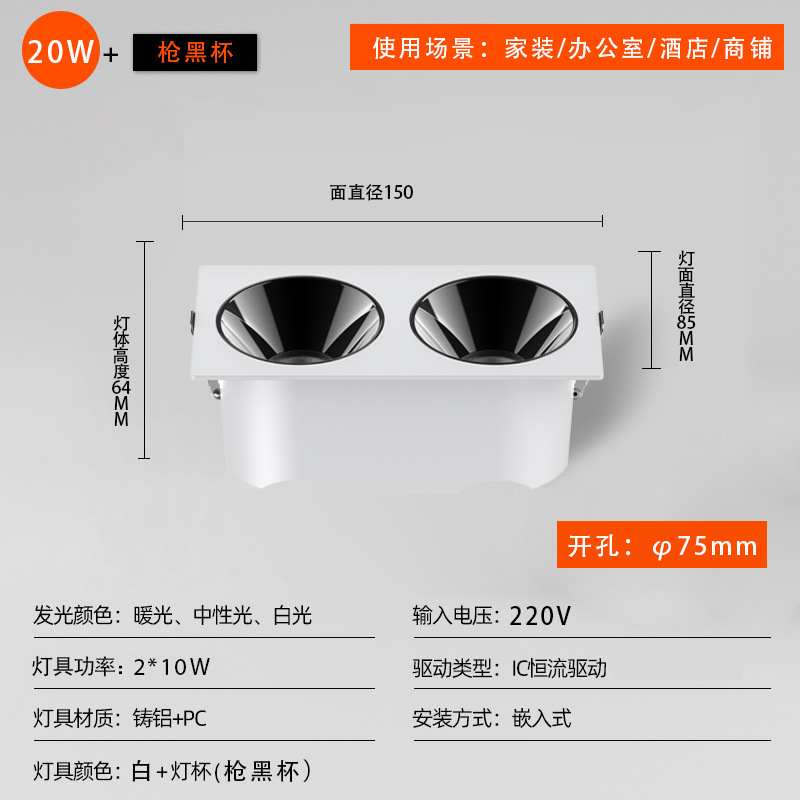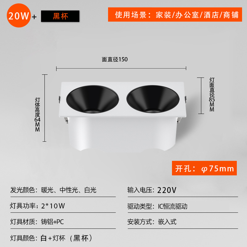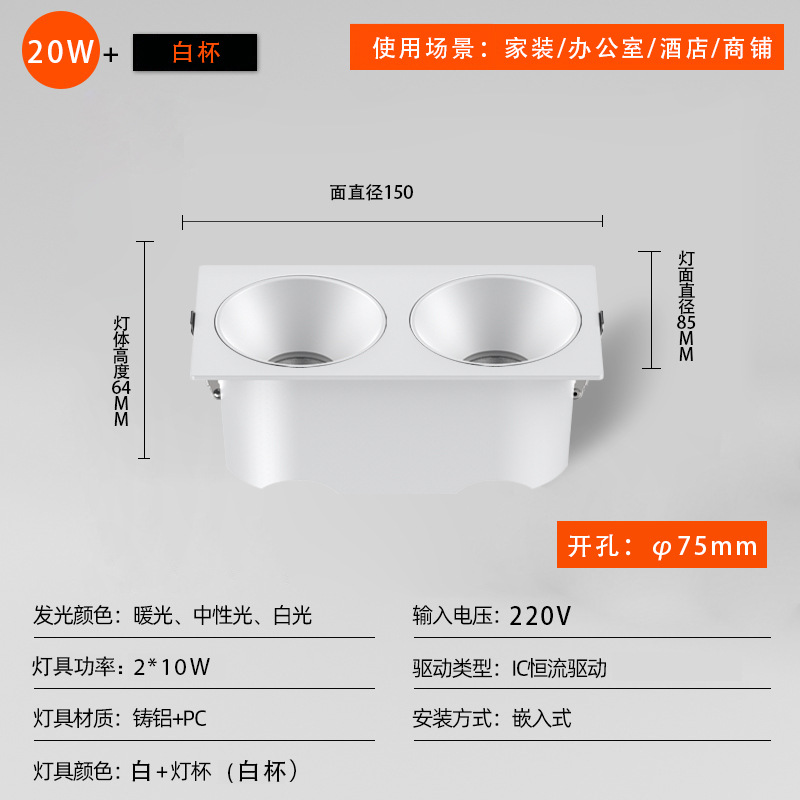 - 功率:方形150*75開孔20W白杯