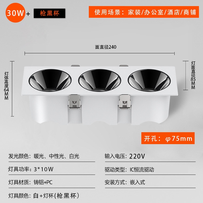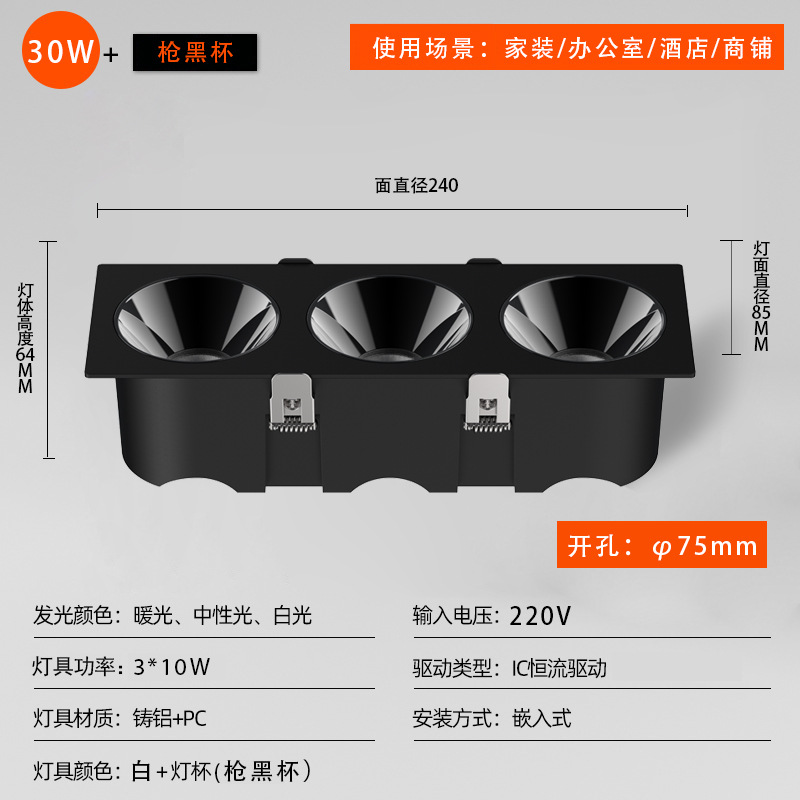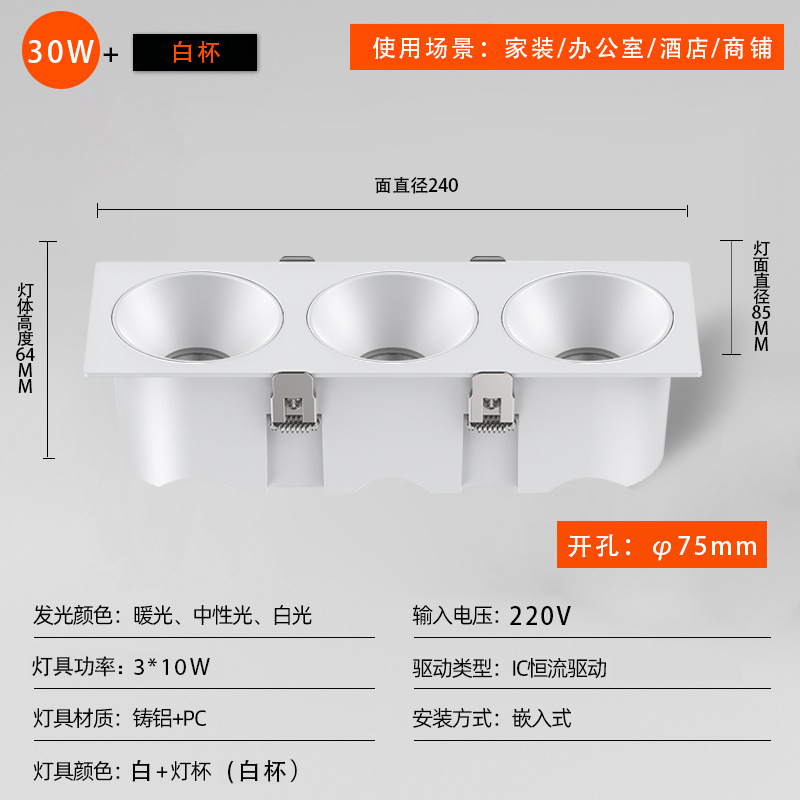 - 功率:方形230*75開孔30W白杯