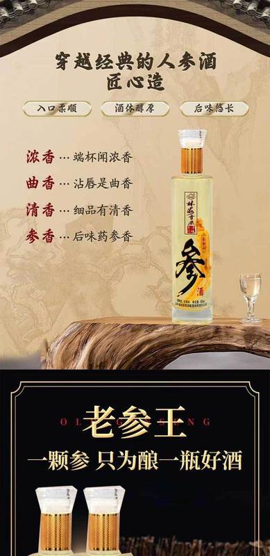 - Raw materials and ingredients: liquor, ginseng