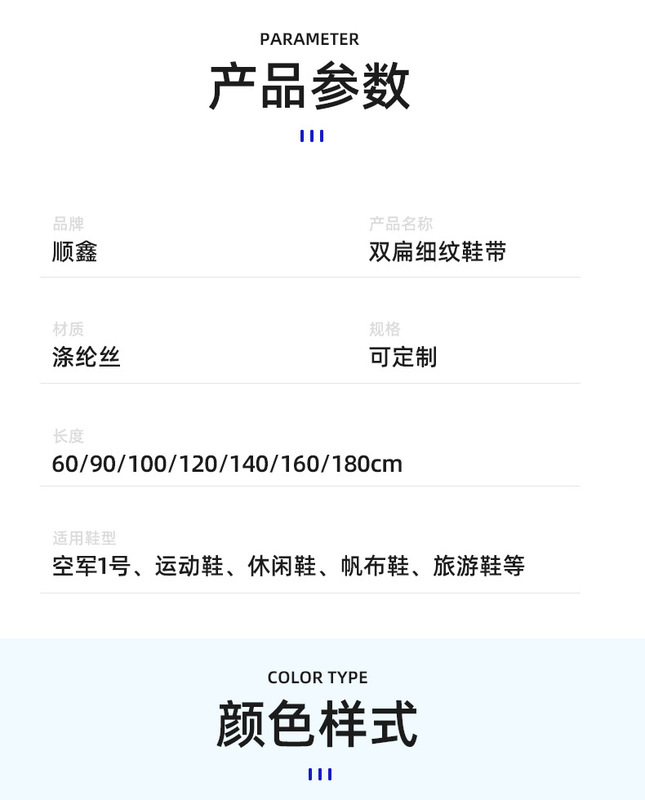 - 樣式:雙層細紋扁平鞋帶