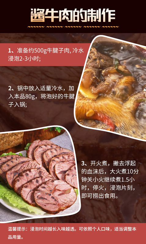 - Packaging specifications: Sauce beef ingredients 80g*10 bags