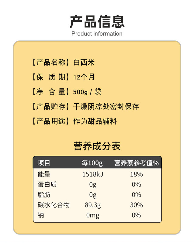 - Packaging specifications: white sago 500g