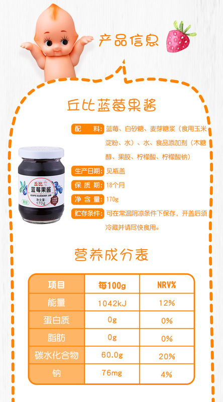 - Packaging specifications: Kewpie blueberry jam 170g (12 bottles in a box)