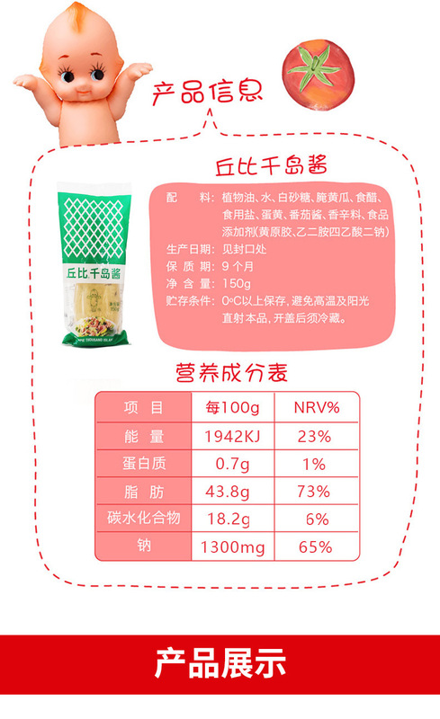 - Packaging specifications: Kewpie Thousand Island Sauce 150g (24 bags in a box)
