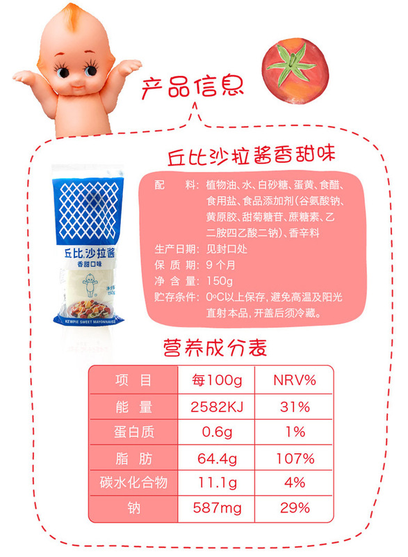 - Packaging specifications: Kewpie Sweet Salad Dressing 150g (24 bags in a box)