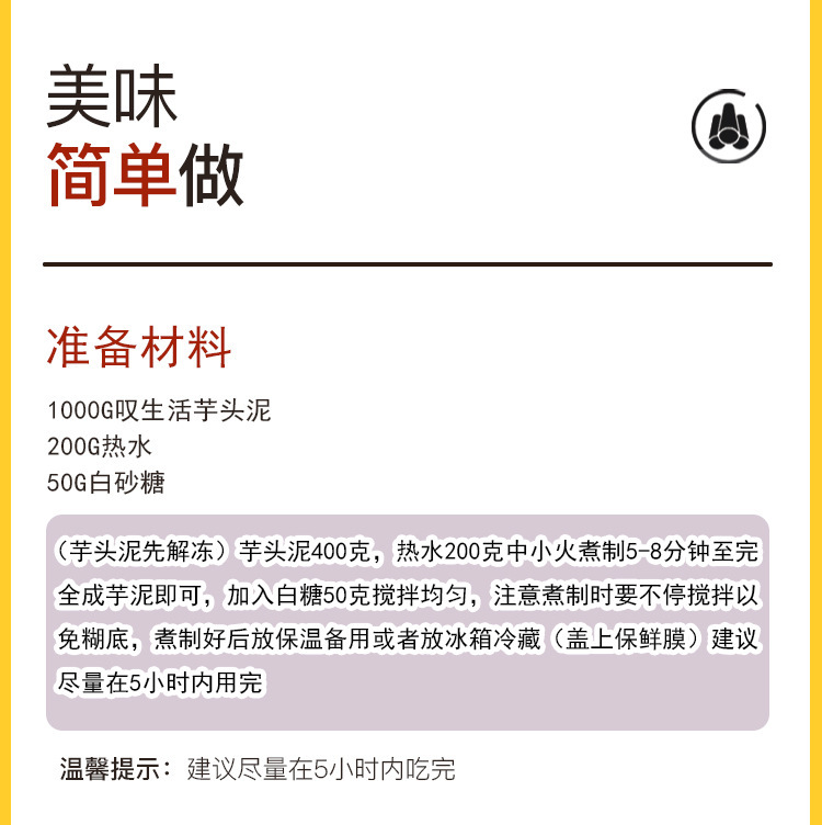 - Packaging specifications: 500g taro paste
