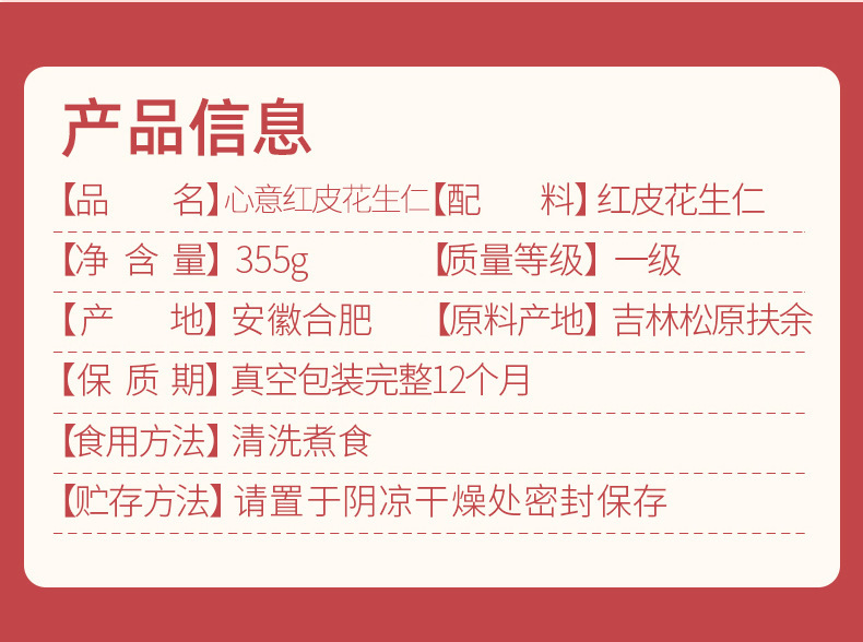 - Variety: Red-skinned peanut kernels