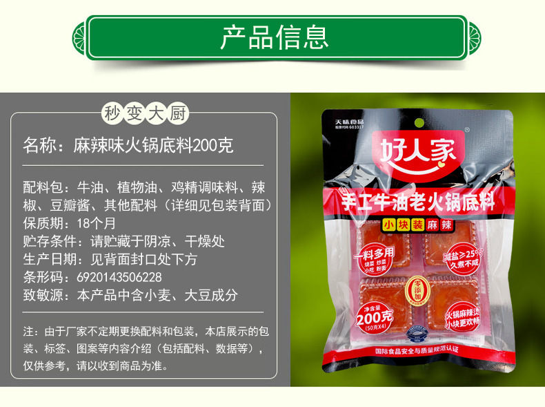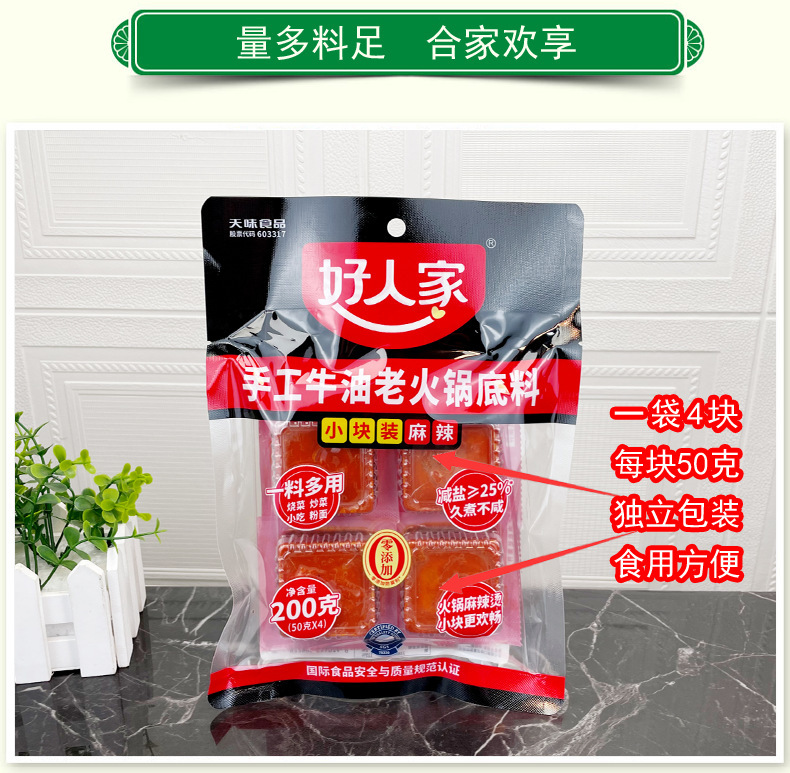 - Packaging Specification: Small Square Spicy and Hot Beef Tallow Hot Pot Base Sauce 200g