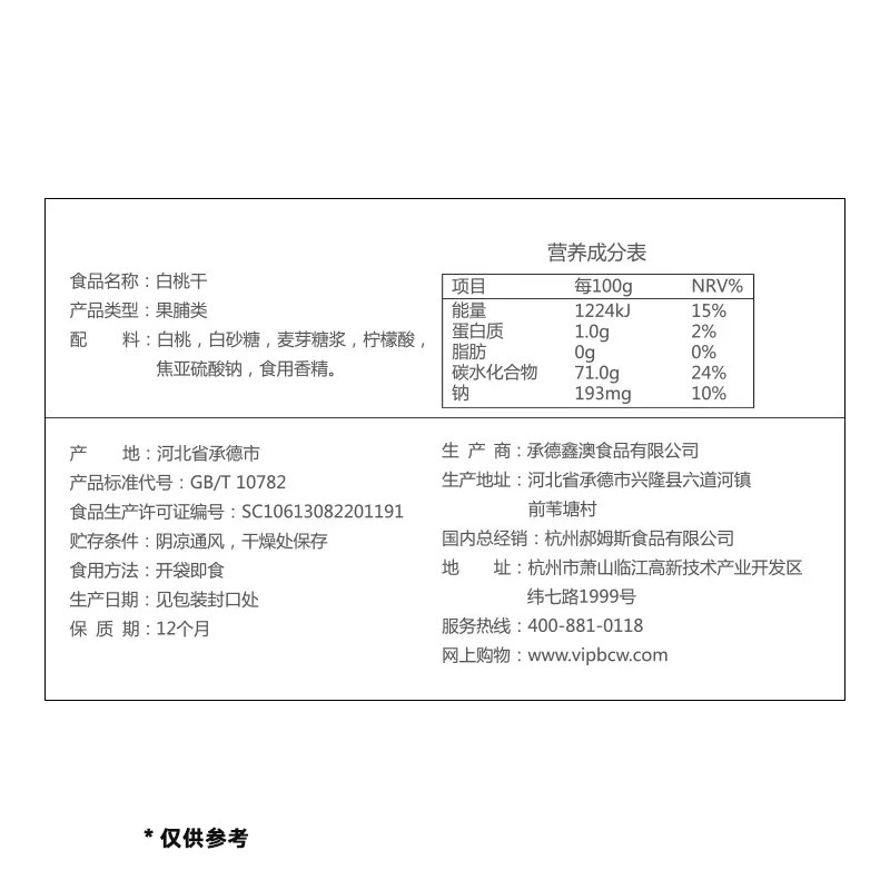 - Packaging specifications: Baicao flavor dried white peaches 100g