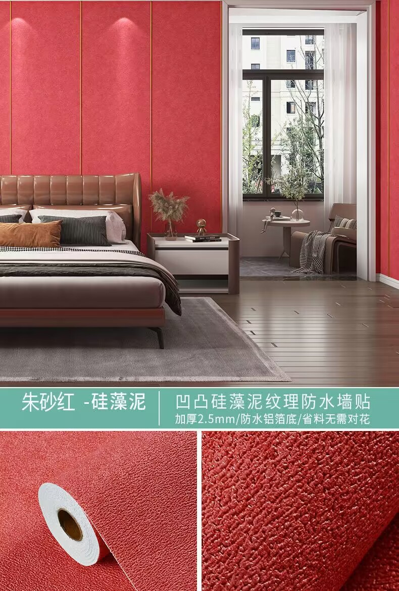 - 花色:特厚覆蓋性強-硃砂紅-硅藻泥【50cm寬×1米價(最長10米一卷)】