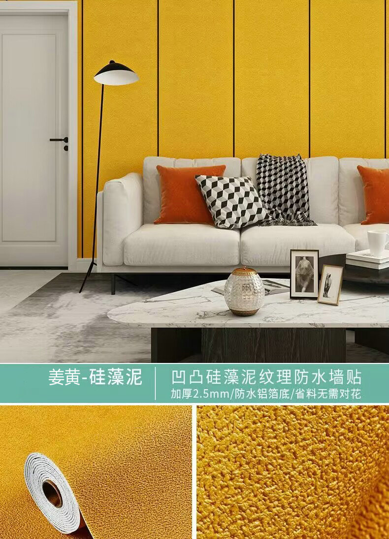 - 花色:特厚覆蓋性強-薑黃色-硅藻泥【50cm寬×1米價(最長10米一卷)】