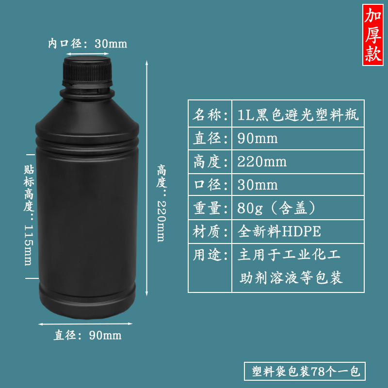 - Specifications: 1L black small mouth round bottle (78 pcs/pack)