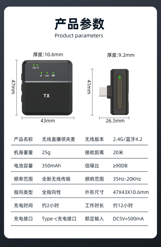 - 麥克風類型:領夾麥克風