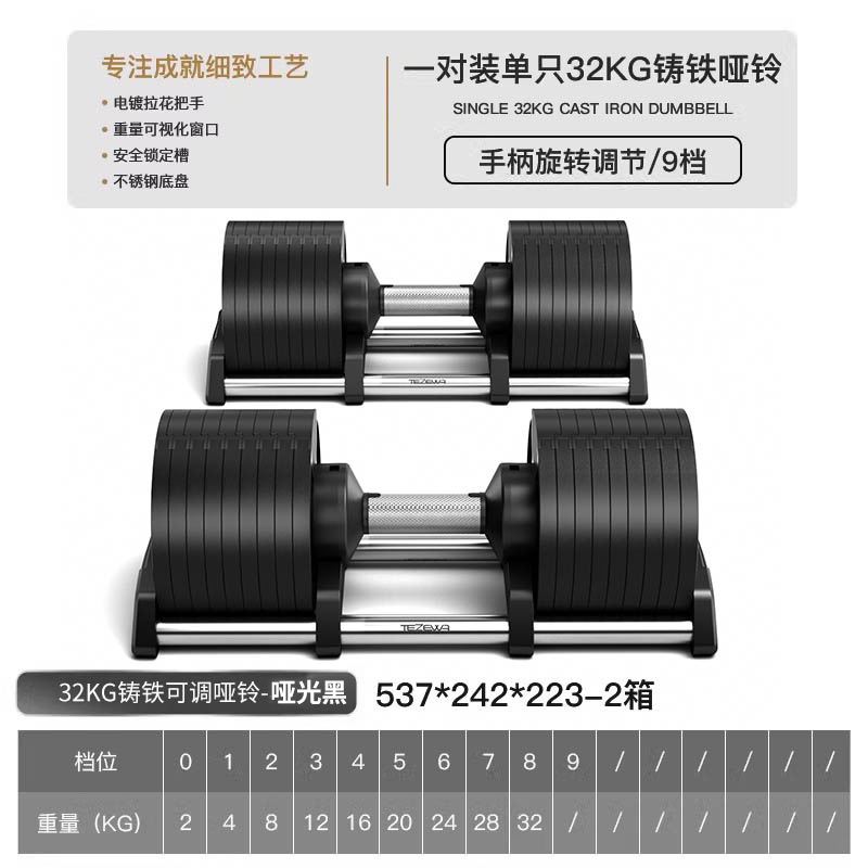 - Specification: Pair Set Total Weight 64kg (Single 32kg) [Matte Black] 9 Levels