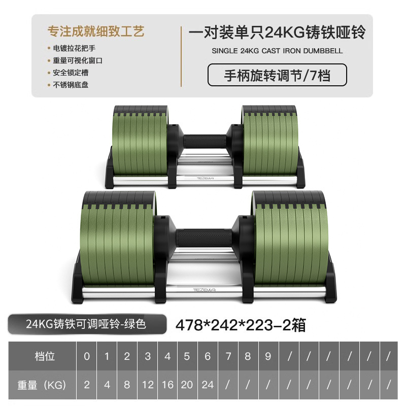 - Specification: Pair Set Total Weight 48kg (Single 24kg) [Military Green] 7 Levels