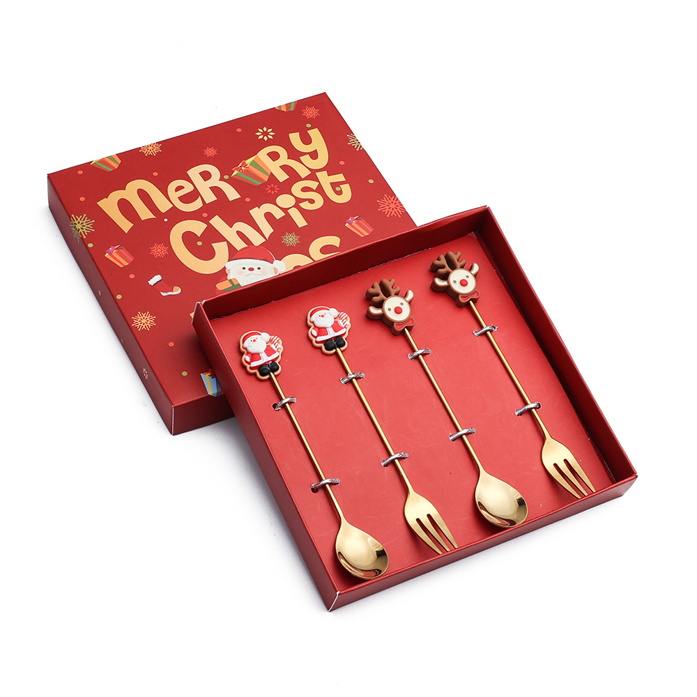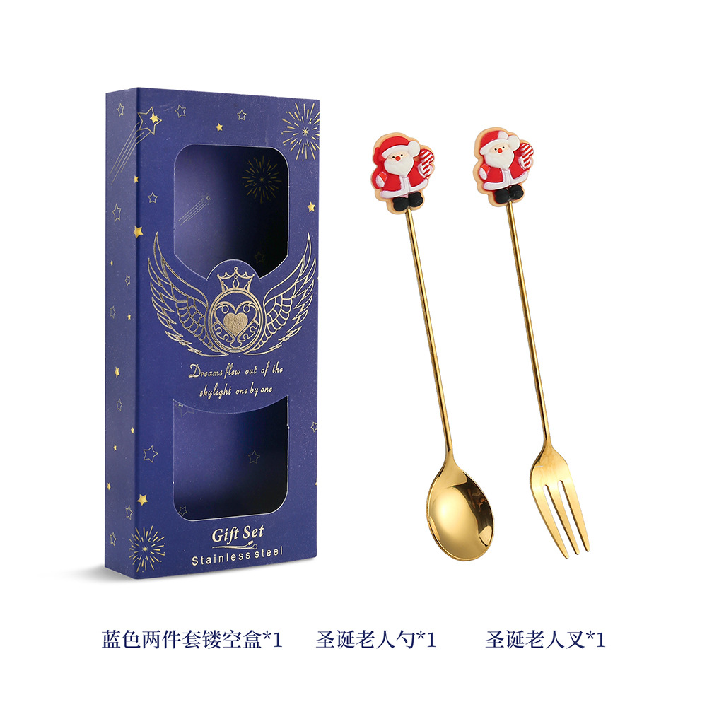 - 規格:聖誕老人勺+麋鹿叉+花圈勺+聖誕樹叉+小號聖誕盒