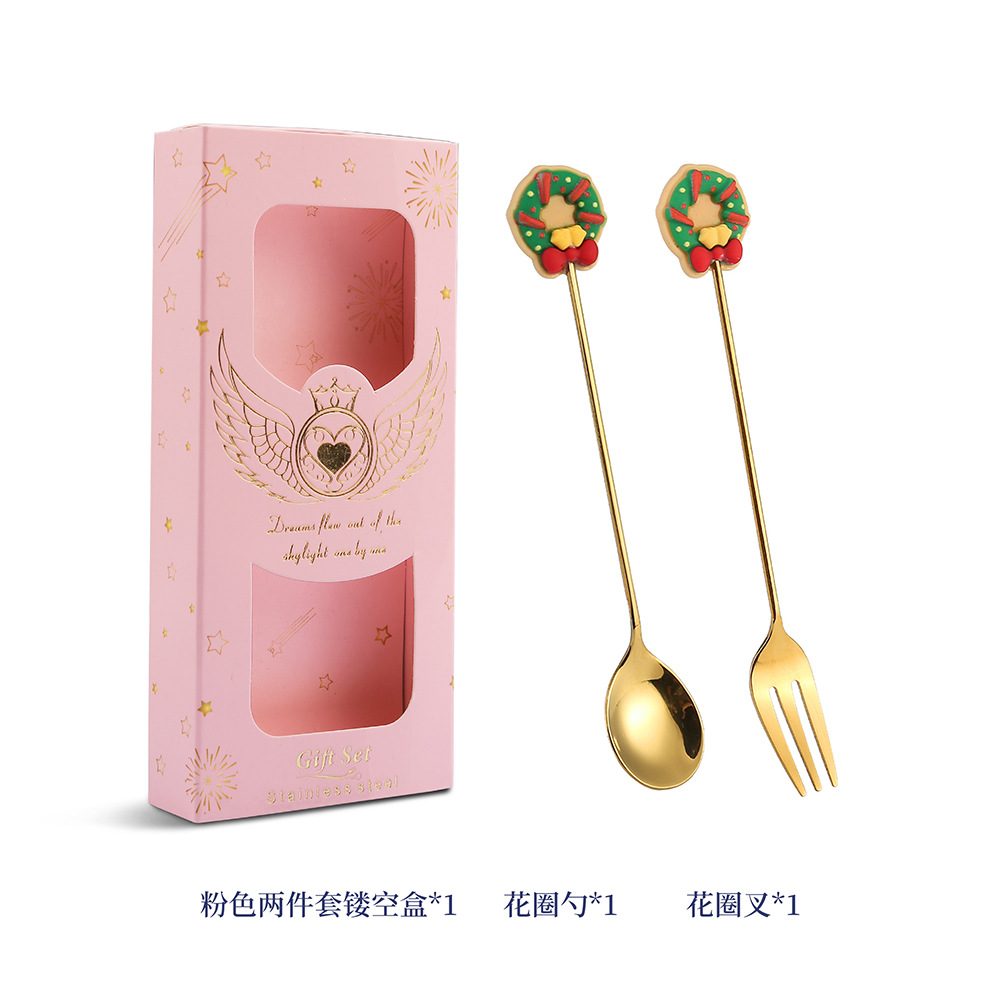 - 規格:聖誕花圈勺叉-兩件套粉色鏤空盒