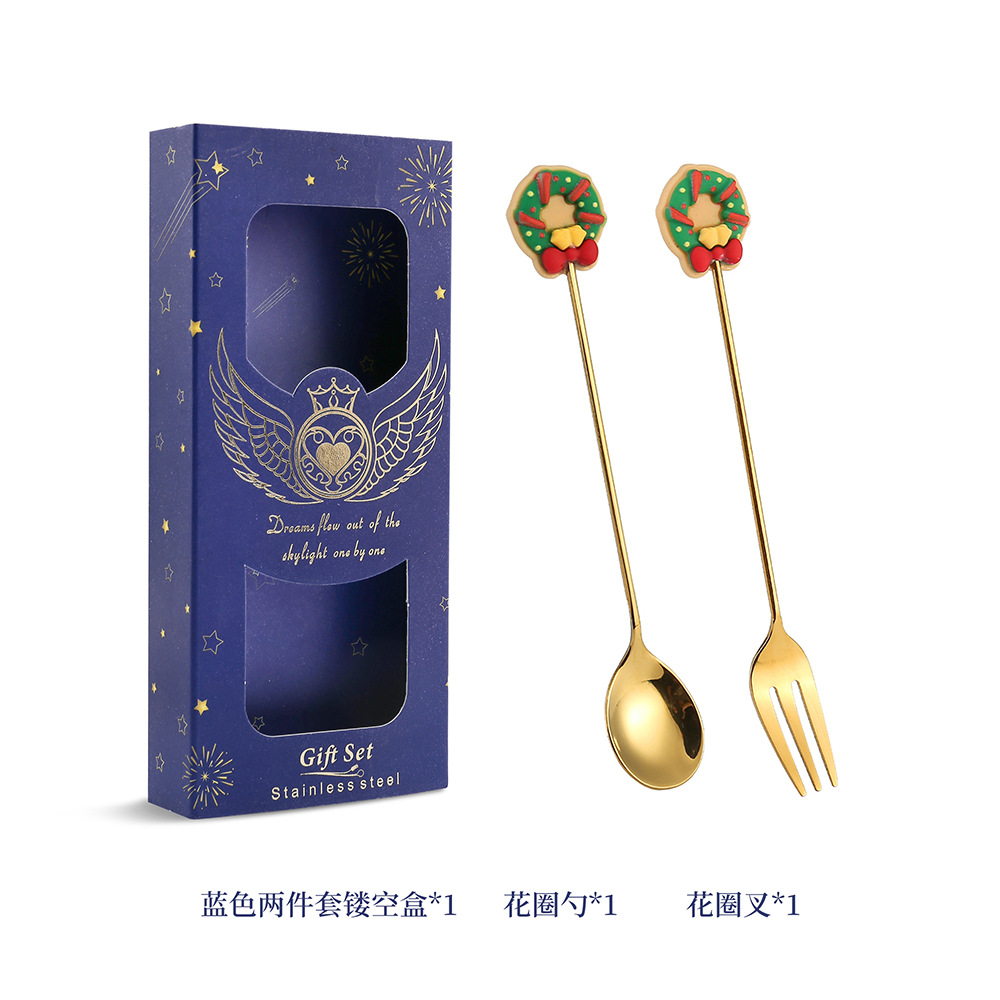 - 規格:聖誕花圈勺叉-兩件套藍色鏤空盒