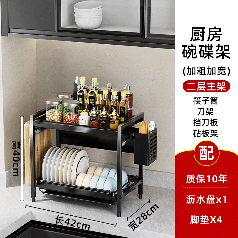 - Number of layers (specification): Two-layer bowl and plate rack + seasoning rack + knife rack + chopstick筒 + cutting board rack