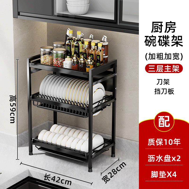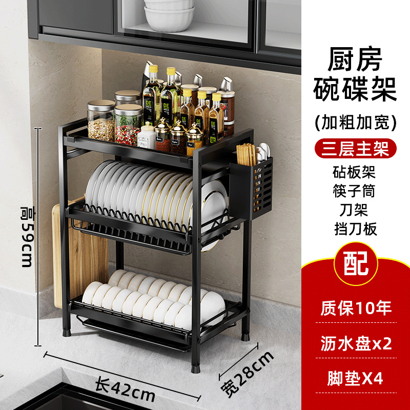 - Number of layers (specification): Three-layer bowl and plate rack + seasoning rack + knife rack + chopstick筒 + cutting board rack