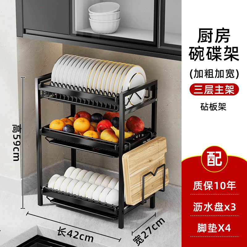 - Number of layers (specification): Three-layer bowl and plate rack main frame + knife and chopsticks rack + cutting board rack