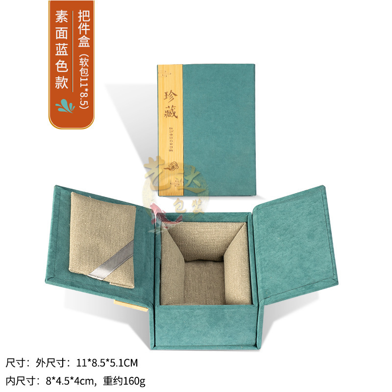 - 規格型號:素麵湖藍(軟包)11*8cm;把件盒