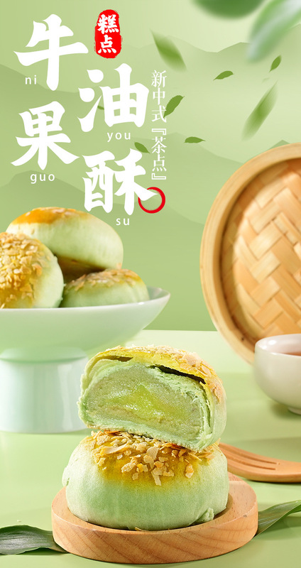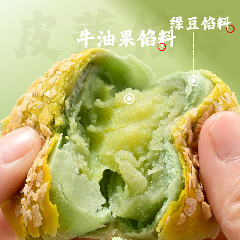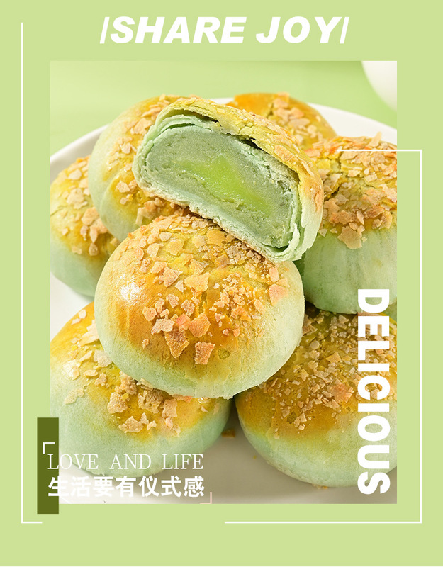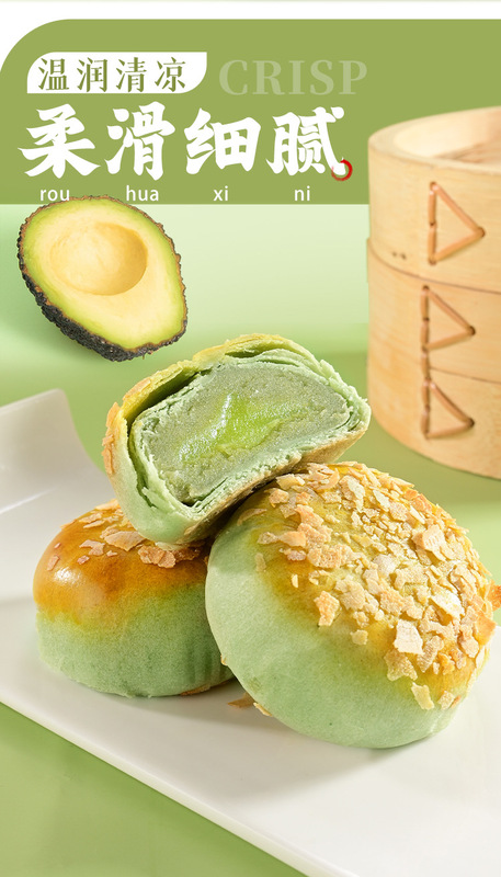 - Ingredients and components: Wheat flour, white sugar, vegetable oil, peeled mung beans, matcha powder, avocado flavoring, etc.