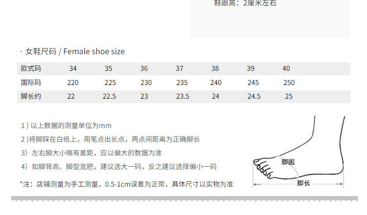- Heel Height: Low (1-3cm)
