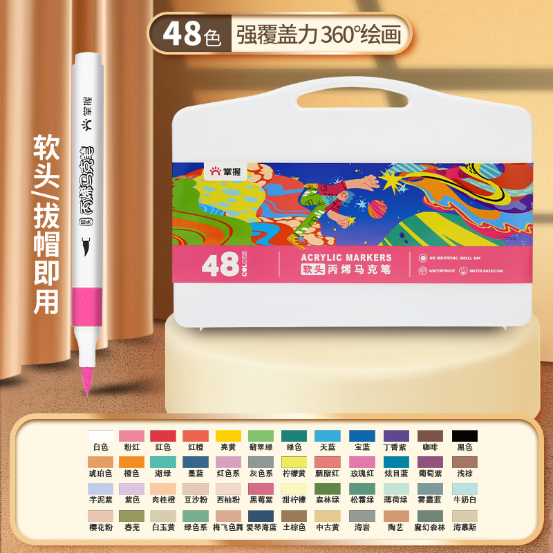 - Specification: 【Single Head Soft Tip】48-color Acrylic Markers