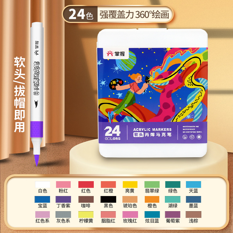 - Specification: 【Single Head Soft Tip】24-color Acrylic Markers