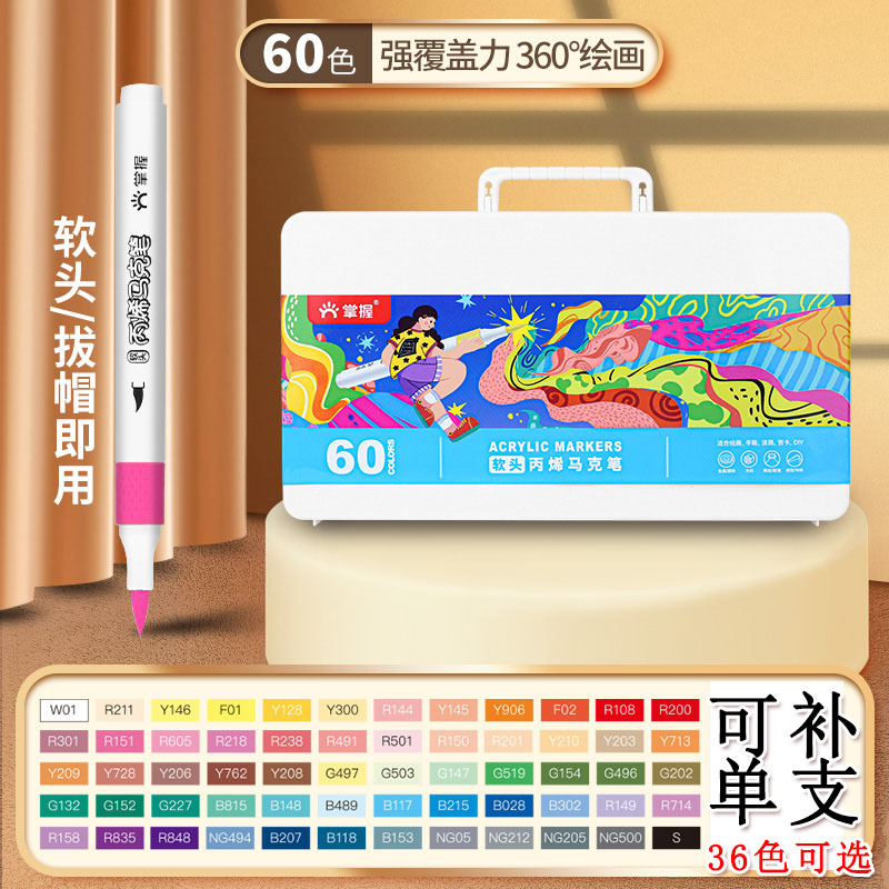 - Specification: 【Single Head Soft Tip】60-color Acrylic Markers