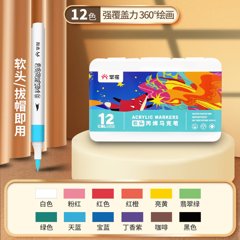 - Specification: 【Single Head Soft Tip】12-color Acrylic Markers