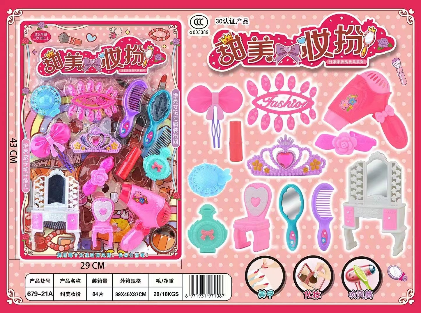 - Featured functions: Play house accessories and make-up