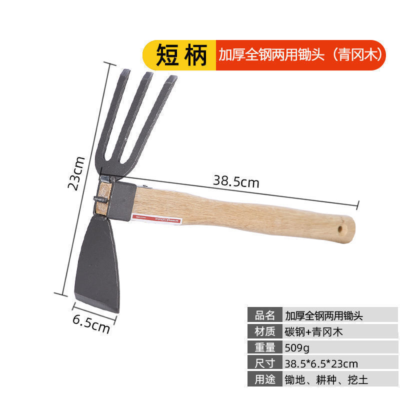 - Specifications: 38cm thick all-steel wooden handle dual-purpose hoe (green steel wood)