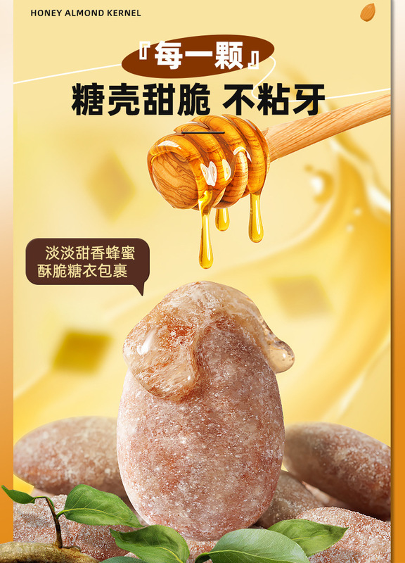 - Raw materials and ingredients: almond kernels, white sugar, compound seasoning (honey butter flavor), high fructose syrup, etc.