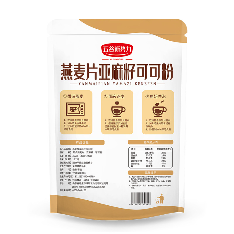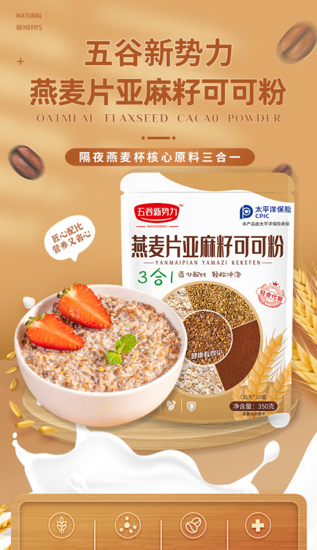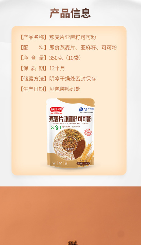 - Packaging Specification: Oat, Flaxseed, and Cocoa Powder - 5 bags (contains 50 small bags)