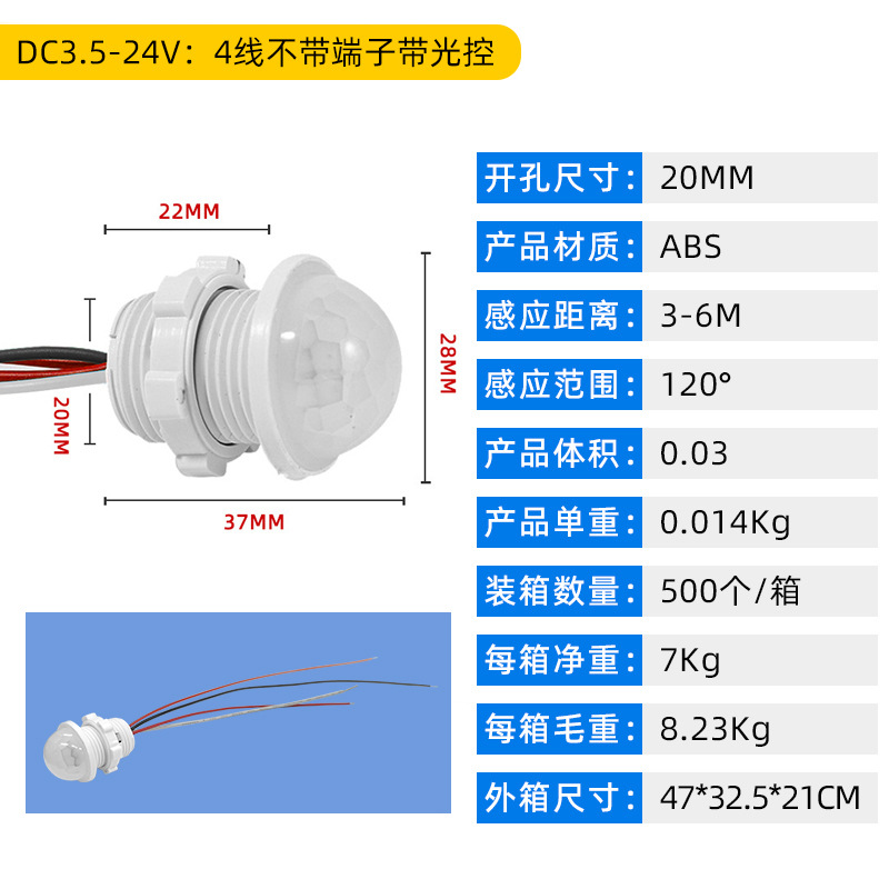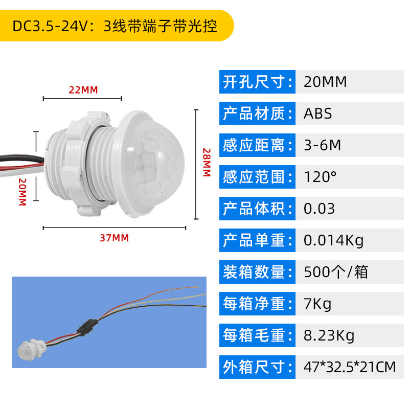 - Model: DC3.5-24V: 3 wires with terminals without light control