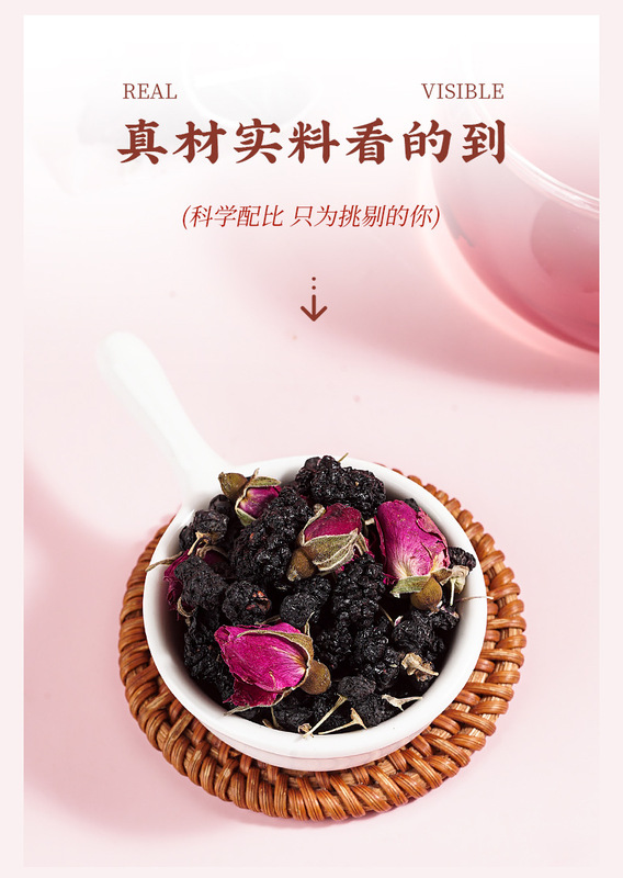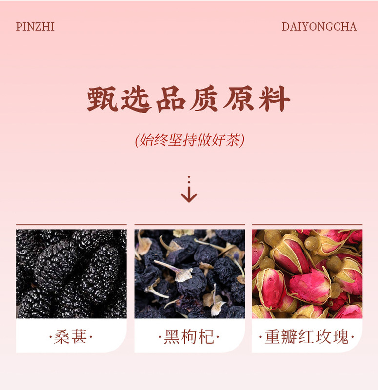 - Raw materials and ingredients: mulberry, black wolfberry, double red rose
