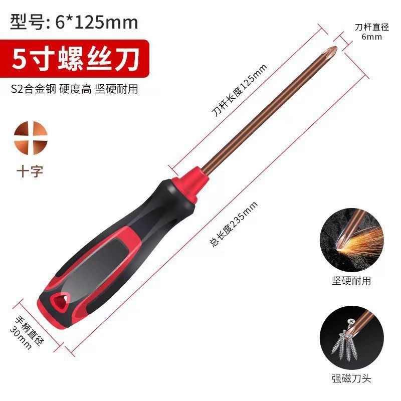 - Specifications and models: Red handle screwdriver 6*125 cross