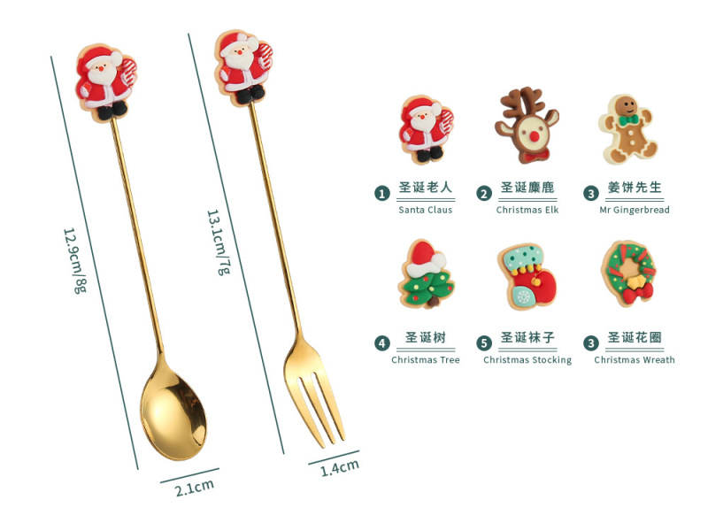 - 規格:2勺2叉-A款:聖誕老人勺+麋鹿叉+花圈勺+聖誕樹叉