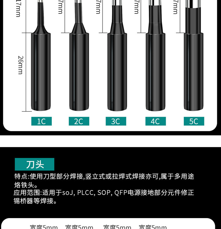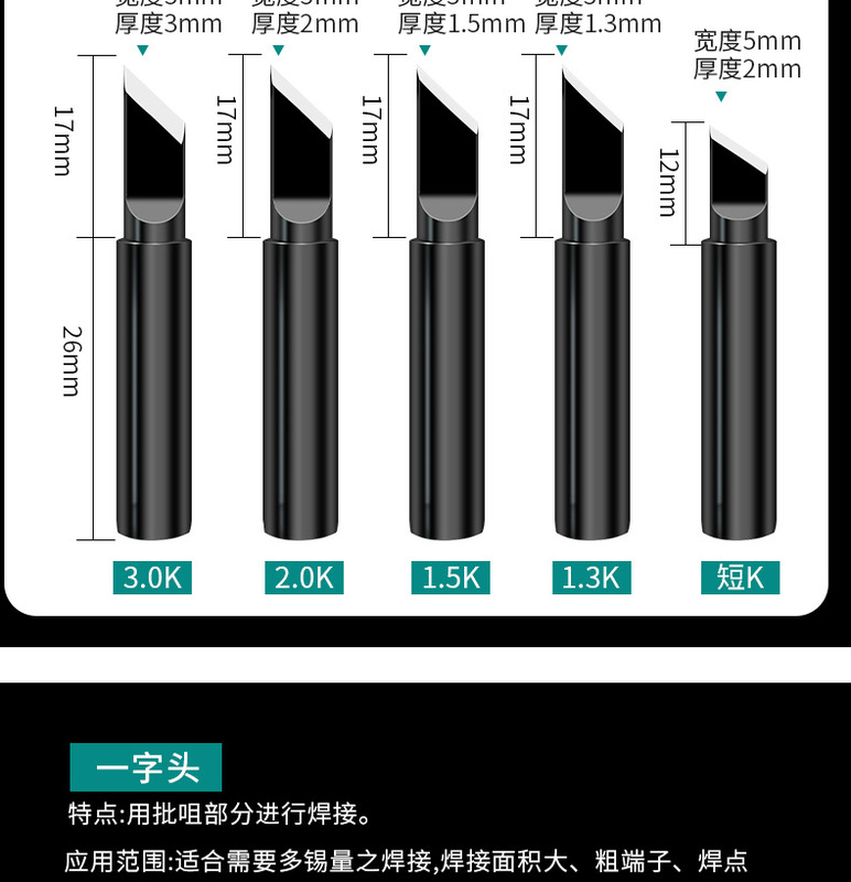 - Soldering Iron Tip Shape: Sharp, Round, Blade, Flat, Hoof